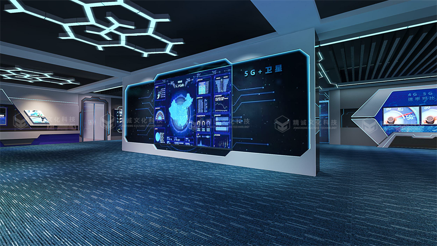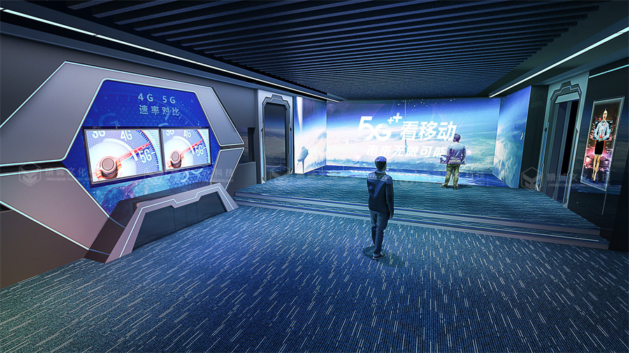 新基建展廳設(shè)計-移動5G數(shù)字展廳案例,中國移動5G數(shù)字展廳以通訊技術(shù)為開端,重點介紹中國移動在5G方面與政務(wù)、工業(yè)、教育、醫(yī)療、旅游等領(lǐng)域開展的精細化項目,以及與各行業(yè)開展的5G信息化項目,通過多媒體技術(shù),打造集互動娛樂、沉浸式體驗、智能家居生活于一體的數(shù)字化5G展示中心。移動5G數(shù)字展廳設(shè)計案例