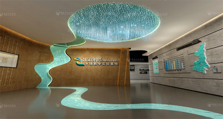 以圖文展板的形式,展示引漢濟渭公司概況、企業(yè)文化、工程成果、世界著名水利工程、引漢濟渭助力陜西,英模墻、董事長寄語,最后以電子簽名機收尾結束。水系工程規(guī)劃館設計-引漢濟渭實驗基地展館