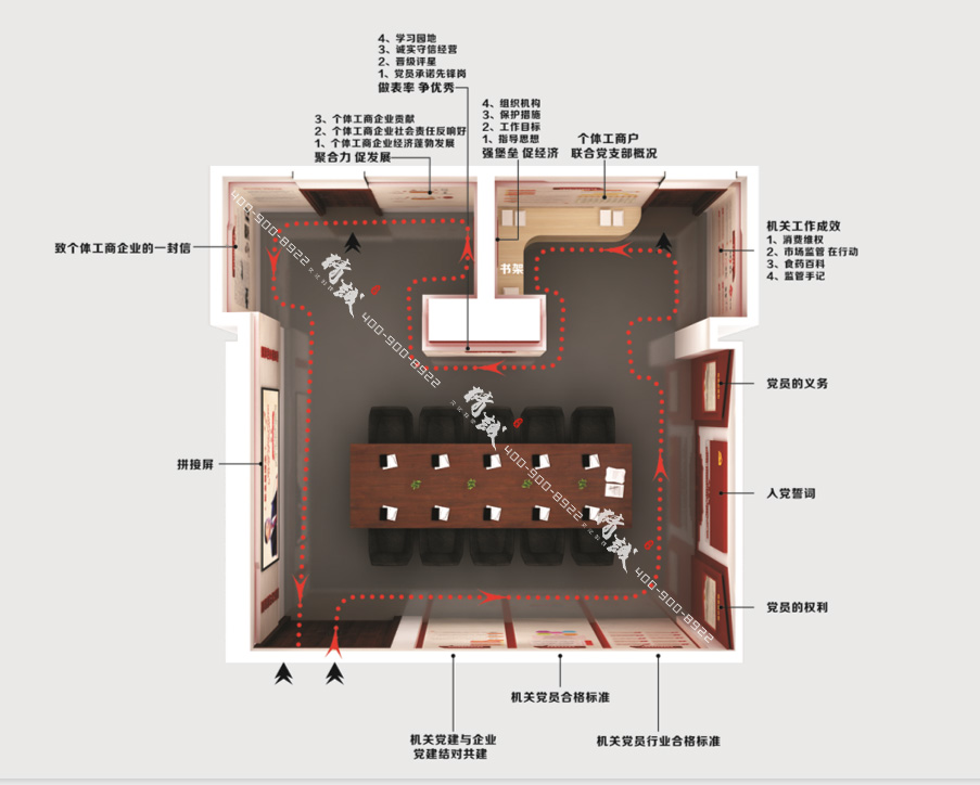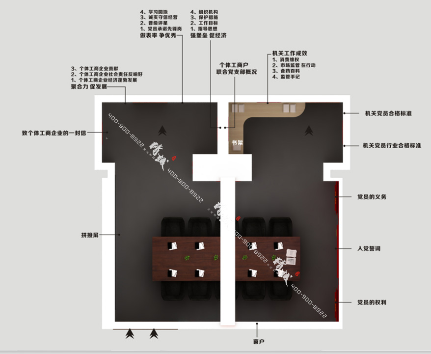 安康鎮(zhèn)坪縣市場監(jiān)督管理局城關(guān)個體工商戶聯(lián)合黨支部活動中心匯報方案-效果圖