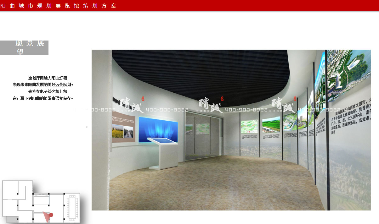 愿景展望:愿景廳用魅力陽曲燈箱表現未來陽曲發(fā)展的美好遠景規(guī)劃。