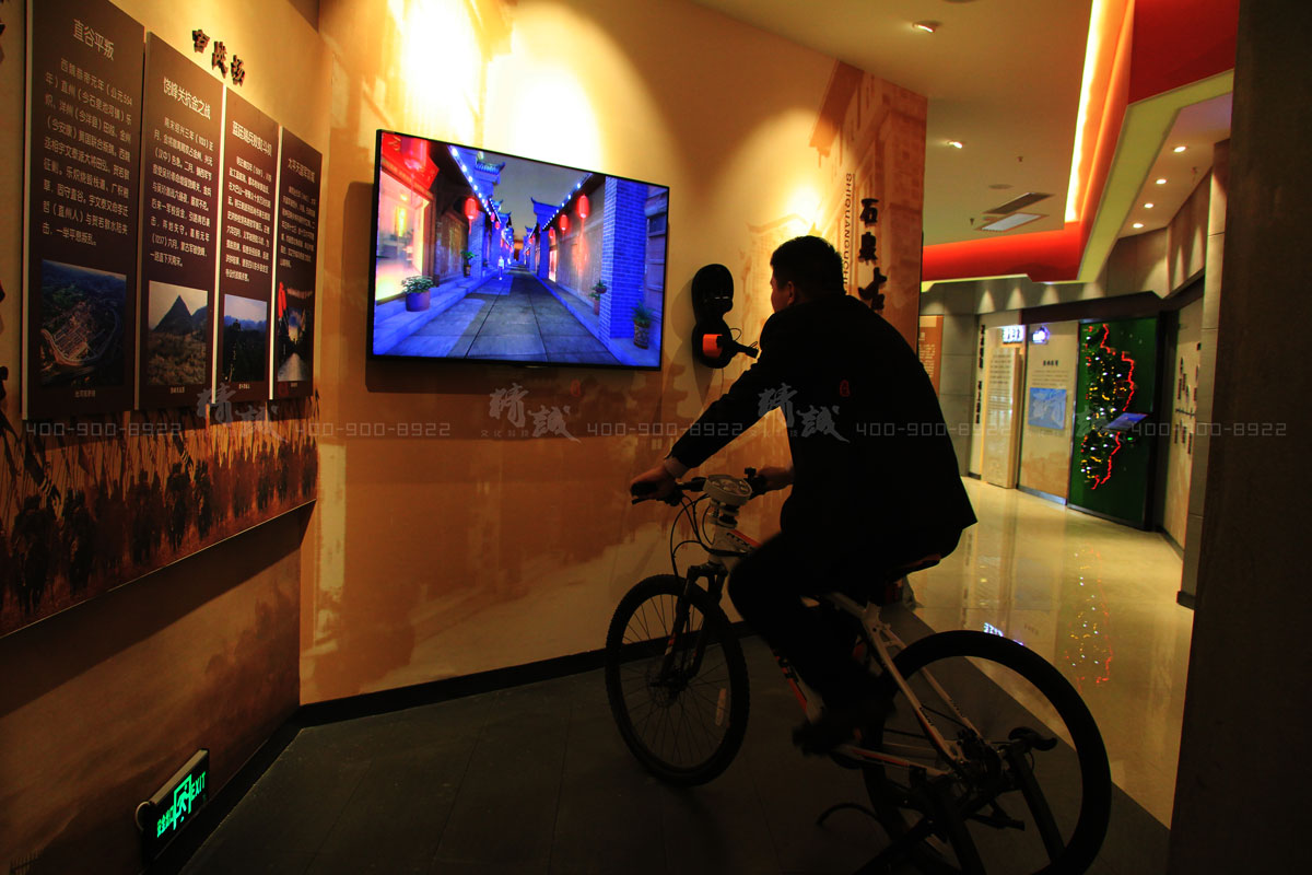 此外該展區(qū)采用單車虛擬漫游系統(tǒng),參觀者戴上VR眼鏡,通過(guò)踩動(dòng)單車石泉明清古城就可能夠直接展現(xiàn)在觀者面前,全方位沉浸式還原古城夜景,盡情領(lǐng)略千年古城之美。