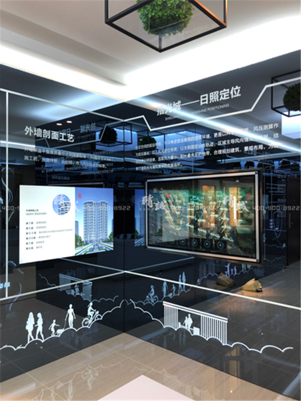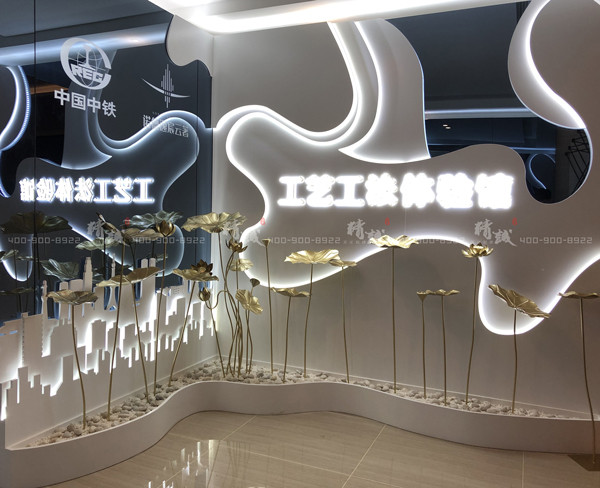 立體字是整個(gè)工法館展廳的核心展項(xiàng),烘托整個(gè)展廳的科技感,體驗(yàn)感。沙盤和弧幕配合使用,展示全球的項(xiàng)目案例及重大業(yè)績,讓參觀者一目了然,感受震撼的體驗(yàn)。