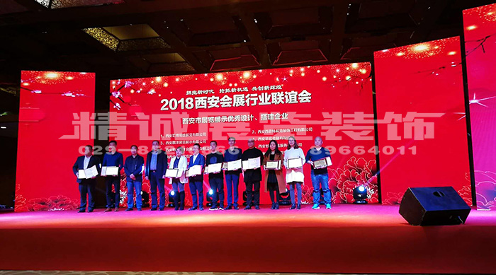 3月20日下午,由西安市會(huì)展行業(yè)協(xié)會(huì)主辦的“2018西安會(huì)展行業(yè)聯(lián)誼會(huì)”于曲江會(huì)議中心圓滿召開。此次大會(huì)主要內(nèi)容包含2017年工作回顧,表彰2017年度西安市會(huì)展先進(jìn)個(gè)人、優(yōu)秀項(xiàng)目、優(yōu)秀企業(yè)、主題演講以及會(huì)展企業(yè)聯(lián)誼互動(dòng)等環(huán)節(jié)。精誠(chéng)展覽裝飾用獨(dú)具特色的設(shè)計(jì)方案和卓越的施工品質(zhì),榮獲“西安市展覽展示優(yōu)秀設(shè)計(jì) 、搭建企業(yè)”榮譽(yù)獎(jiǎng)。