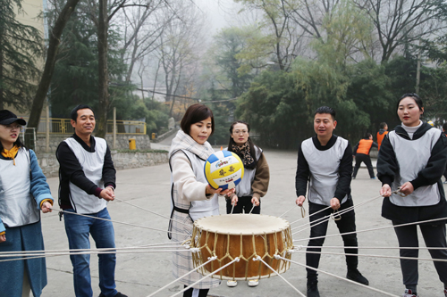 所有隊(duì)員通過鼓面顛球?qū)崿F(xiàn)默契協(xié)作,這個(gè)過程看似簡(jiǎn)單,實(shí)則內(nèi)藏企業(yè)管理的頗深道理!
