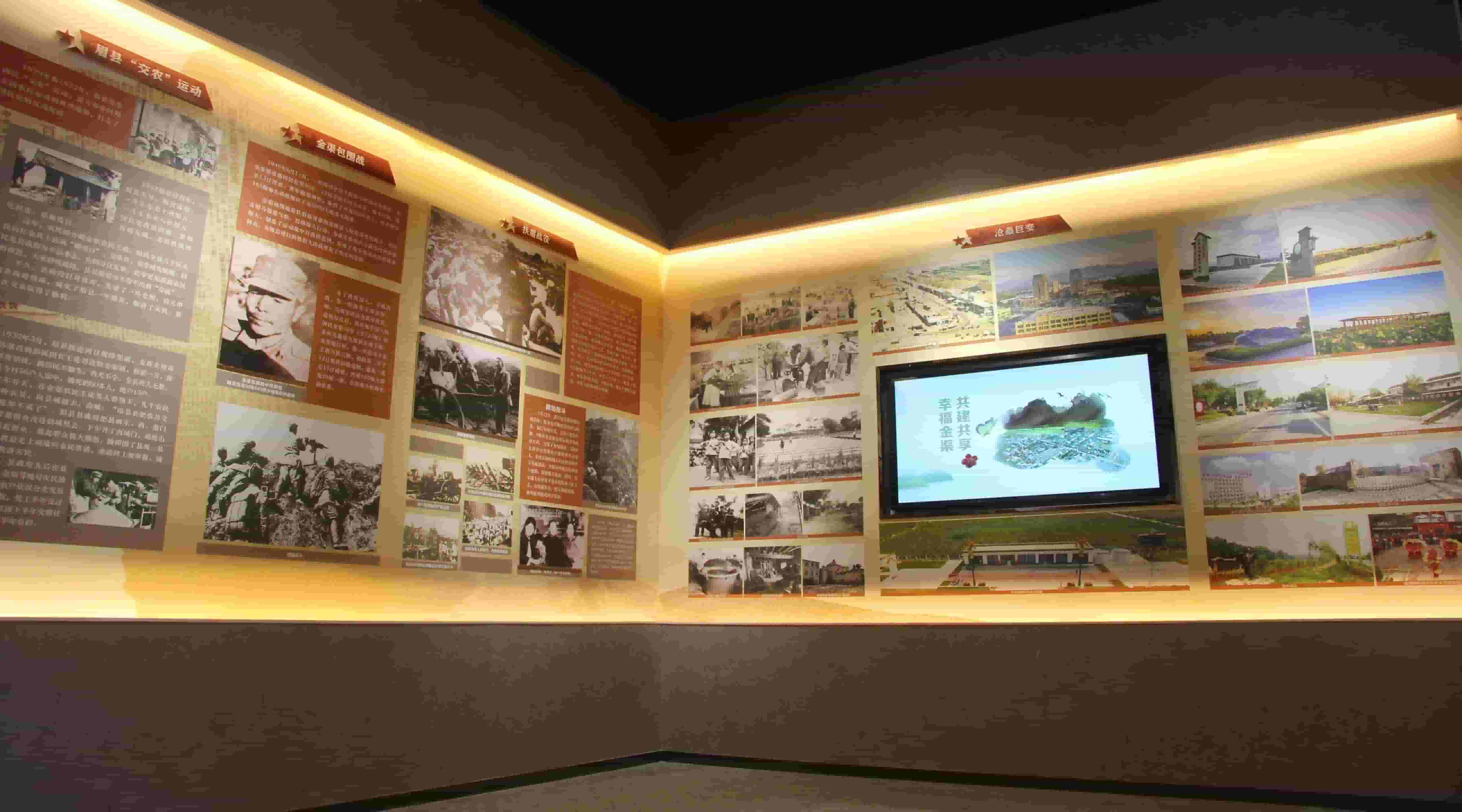 墻面展板通過圖文方式展示了金渠古鎮(zhèn)人杰地靈的燦爛文化和歷史榮耀,同時通過半景畫場景搭建引出紅色金渠的革命史、滄桑巨變發(fā)展史,搭載電子觸摸屏,通過互動形式了解關(guān)于金渠更多紅色歷史。