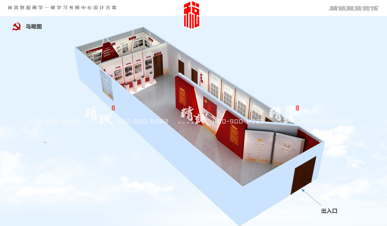 展廳以黨旗、黨徽和稅徽作為貫穿整個展陳空間的形象元素,突出表現(xiàn)商洛市地稅局強烈的黨建學習氛圍,打造深刻的黨建文化呈現(xiàn)基地。