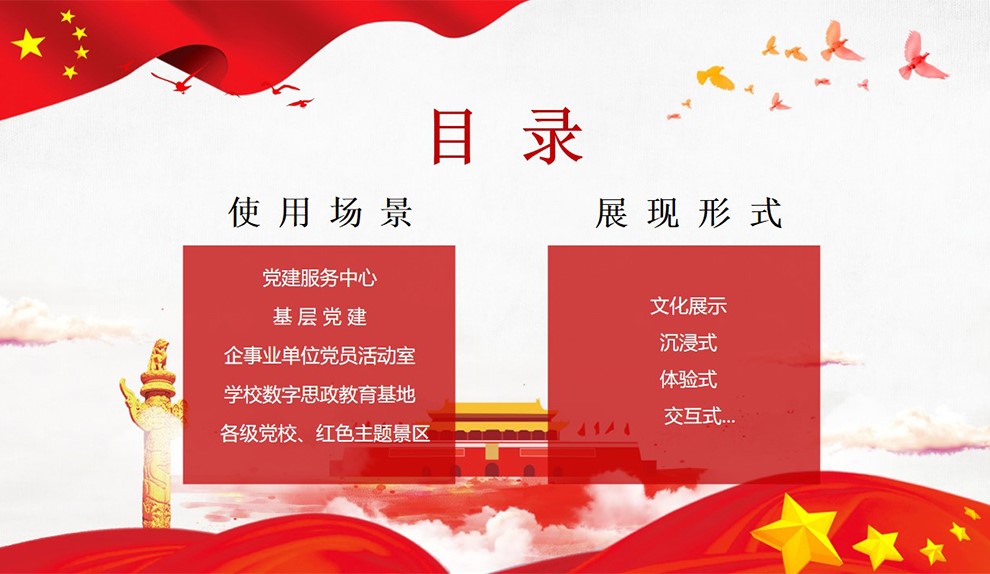 百年黨史|100周年智慧黨建館設(shè)計(jì)整體解決方案主要講述了使用場景與展現(xiàn)形式