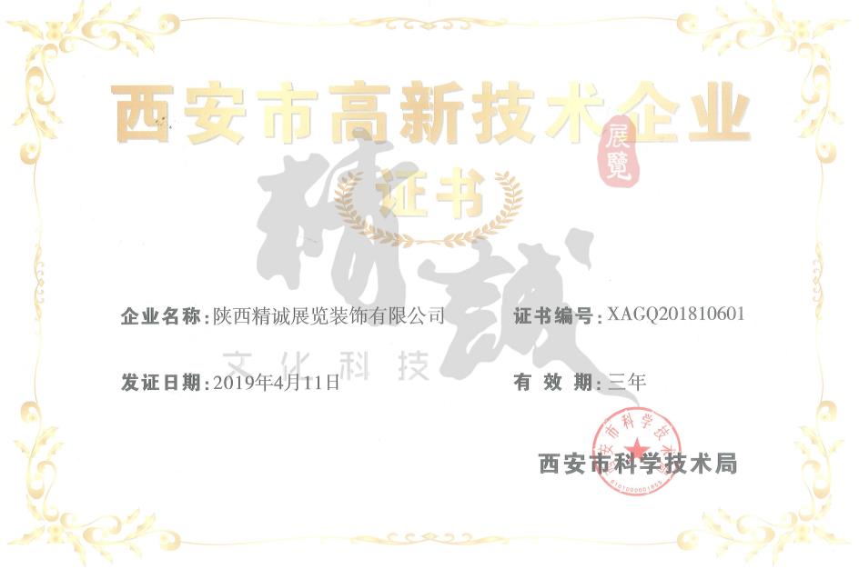 展覽行業(yè)高新技術(shù)企業(yè)證書(shū)