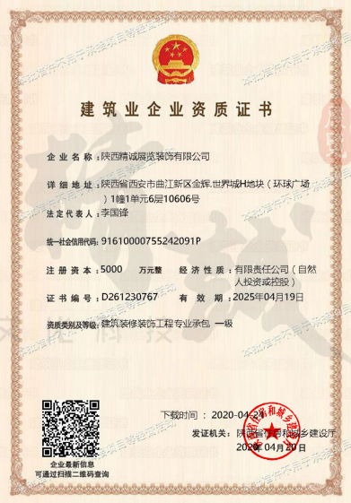 西安市展覽工程企業(yè)一級(jí)甲等資質(zhì)
