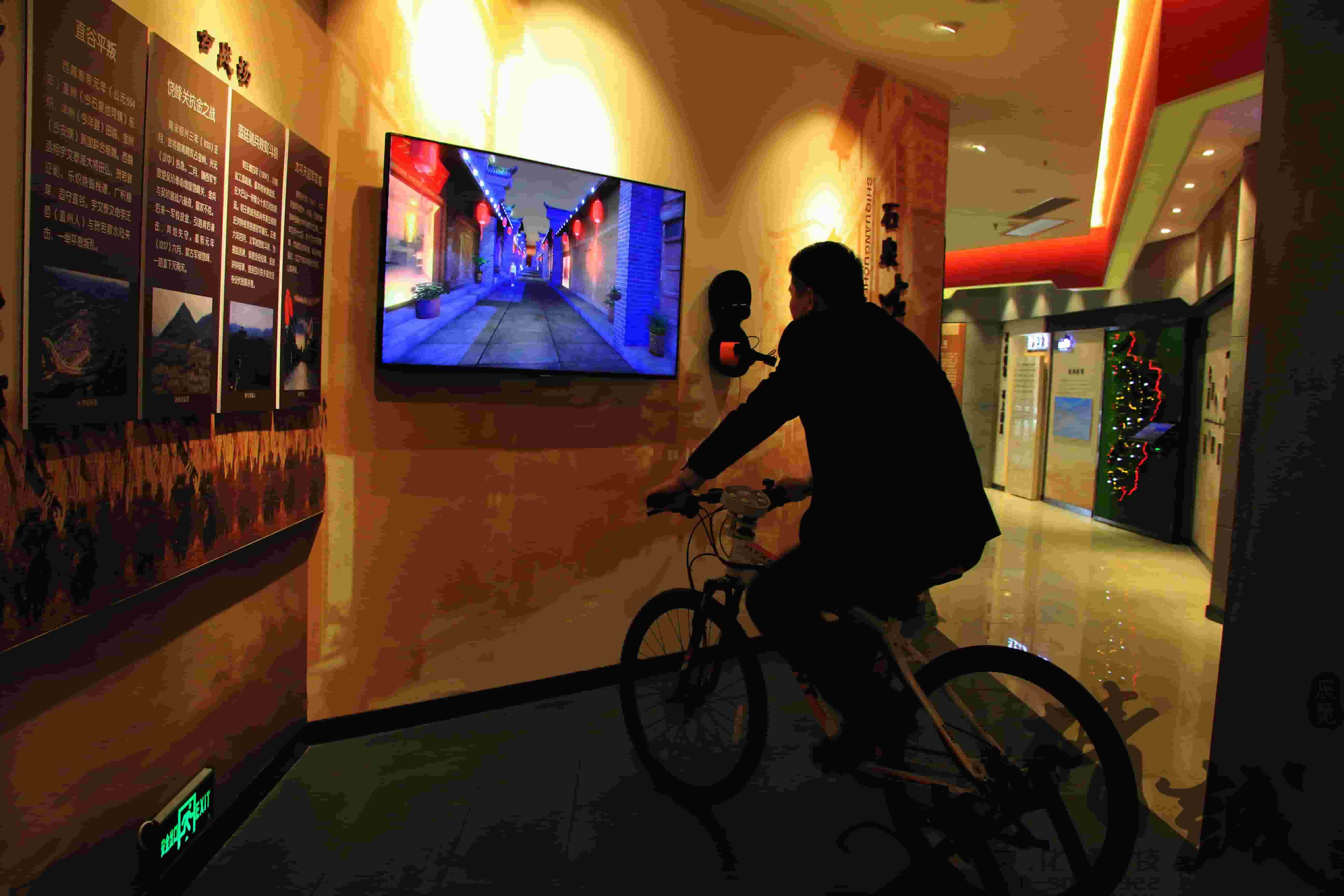 此外該展區(qū)采用單車(chē)虛擬漫游系統(tǒng),參觀者戴上VR眼鏡,通過(guò)踩動(dòng)單車(chē)石泉明清古城就可能夠直接展現(xiàn)在觀者面前,全方位沉浸式還原古城夜景,盡情領(lǐng)略千年古城之美。