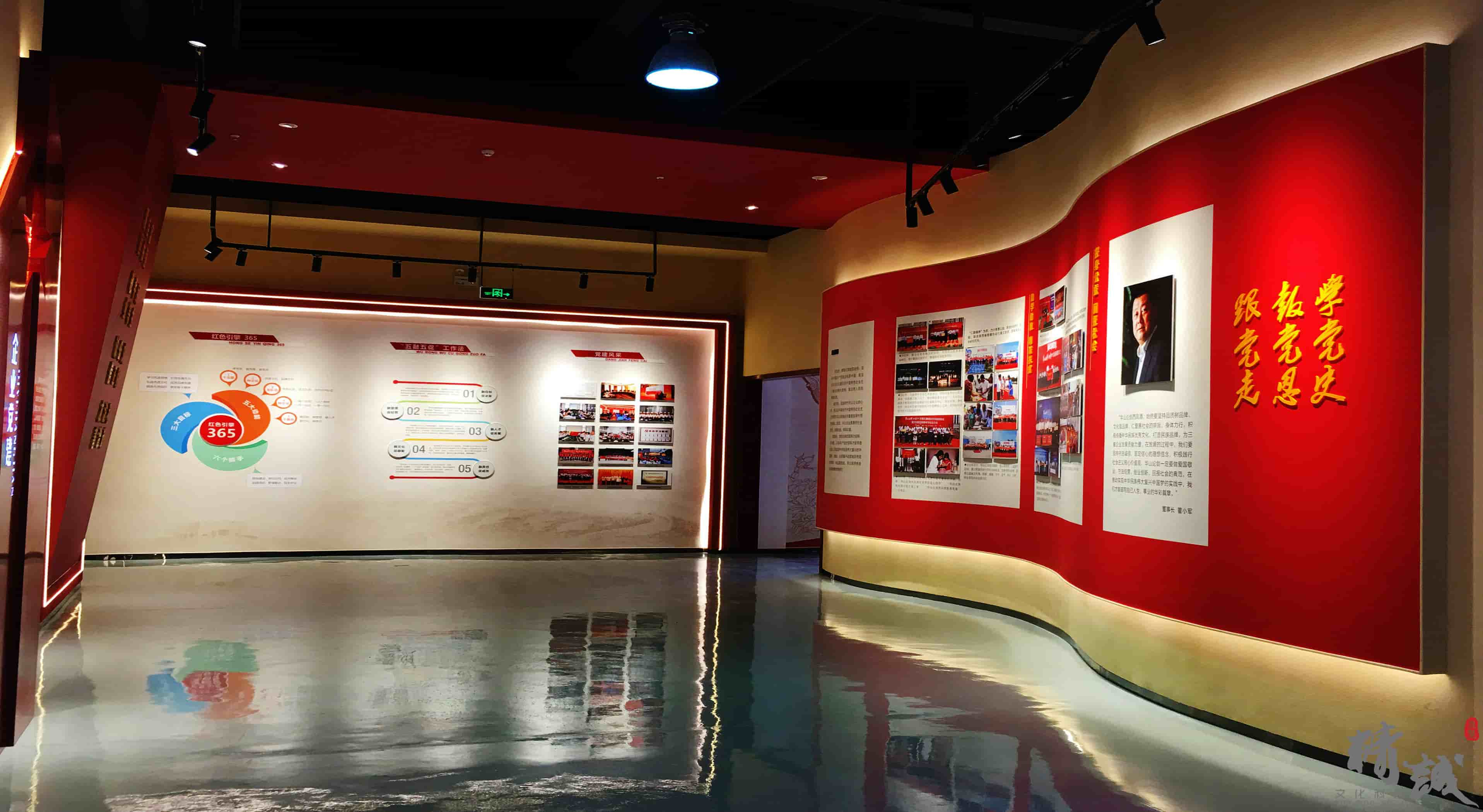 華山論劍黨建主題館坐落于陜西寶雞鳳翔縣,總展陳面積近2000平米,是一座規(guī)模宏大、設(shè)施齊全、內(nèi)容豐富的非公企業(yè)黨建基地。整個主題館分為黨建之路、黨建主題館、品牌之路、黨建陣地和智慧黨建五個部分,其中黨建主題館展陳面積720平米,分為光輝歷程、紅色鳳翔、品牌發(fā)展和企業(yè)黨建4個部分,并突出了“學(xué)黨史、報黨恩、跟黨走”的核心理念。