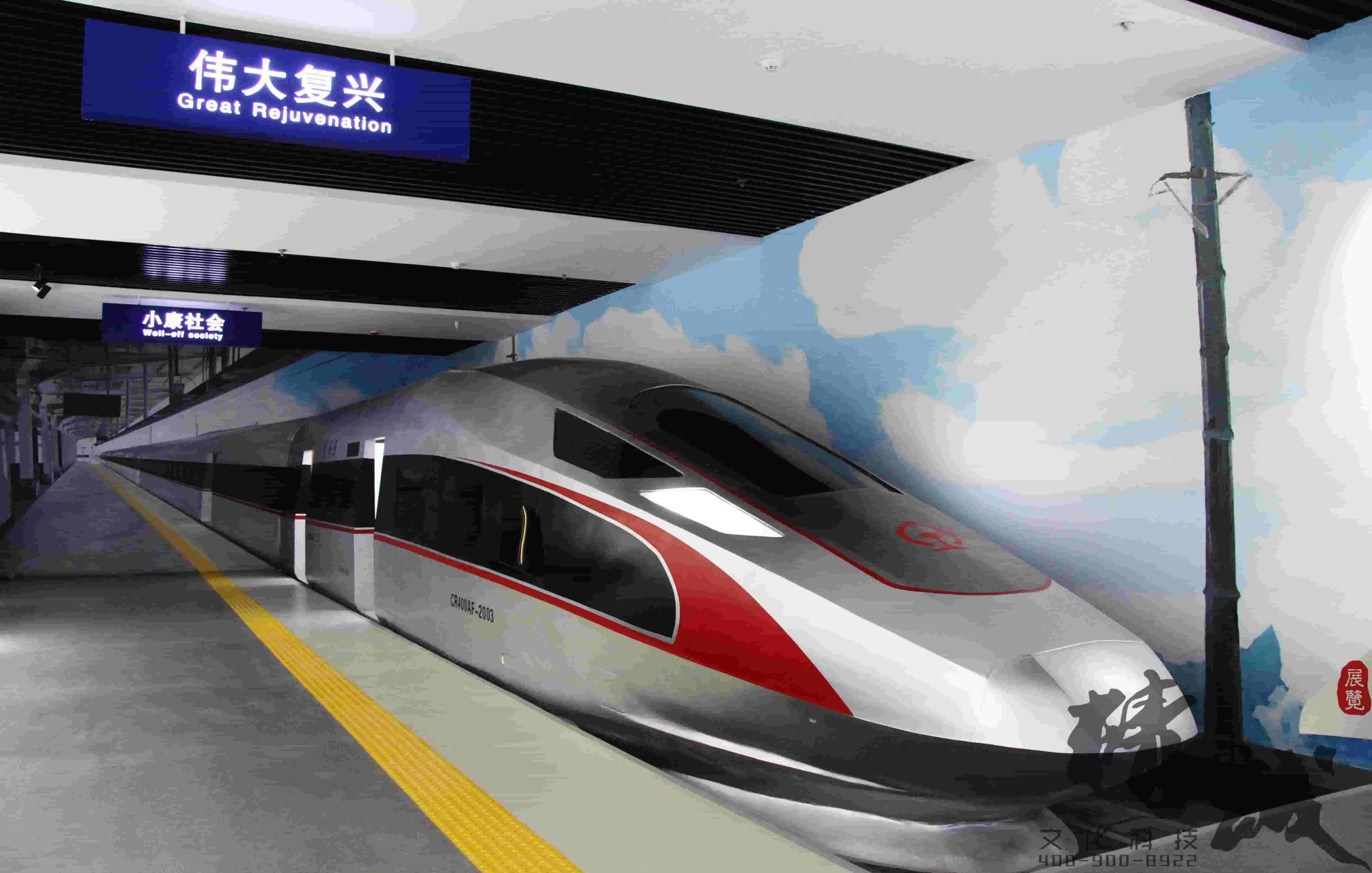 通過語音播報(bào):“歡迎您乘坐由一公司擔(dān)當(dāng)?shù)腉2018次復(fù)興號(hào)列車,本次列車是由小康社會(huì)站駛向偉大復(fù)興站......”,引導(dǎo)參觀者乘坐復(fù)興號(hào)高鐵模型,體現(xiàn)中鐵北京工程局一公司像復(fù)興號(hào)高鐵一樣,為實(shí)現(xiàn)中華民族偉大復(fù)興的中國夢(mèng)而繼續(xù)前行。