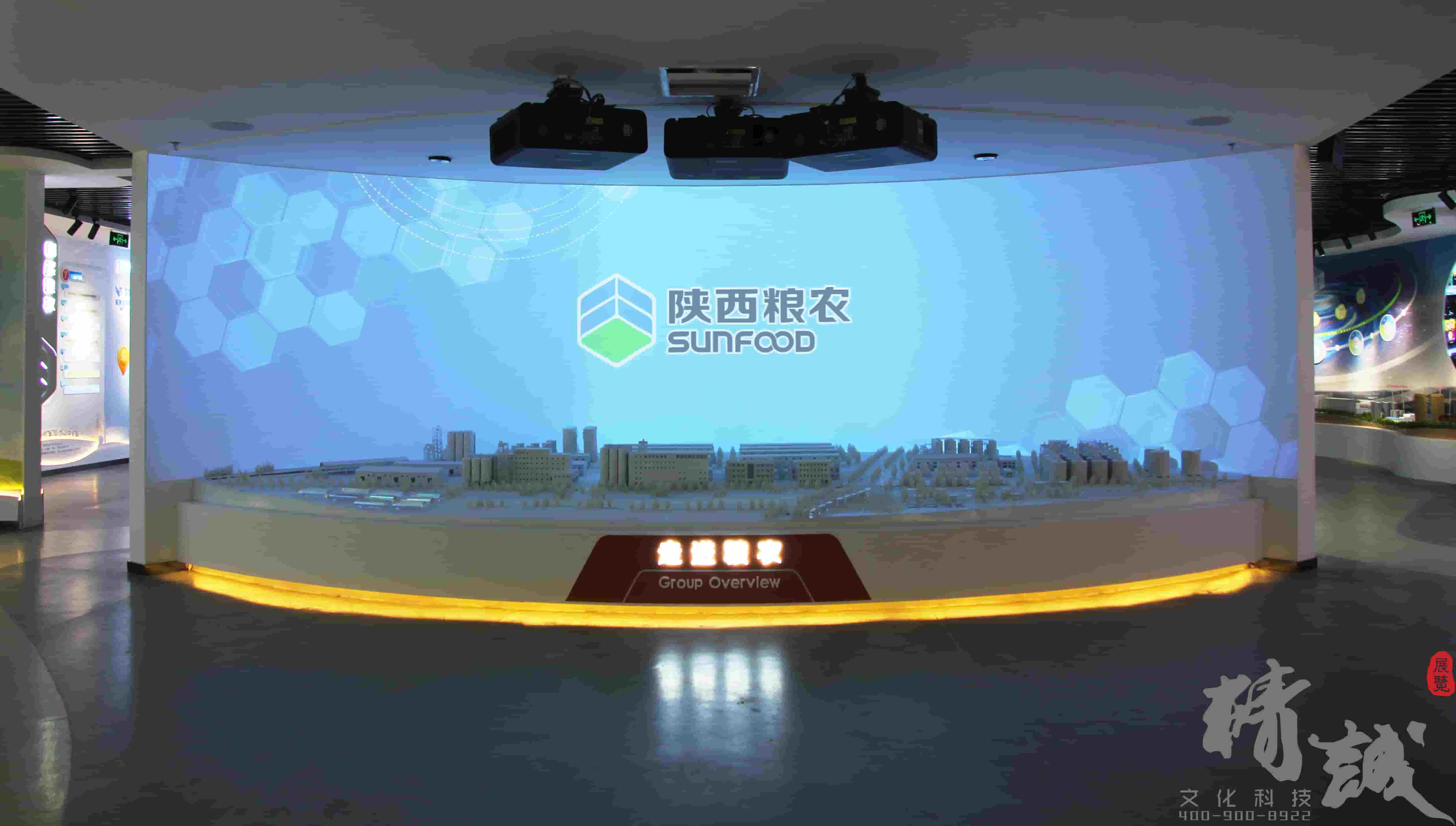 利用數(shù)字投影升級沙盤,配合弧幕投影,以聲光電聯(lián)動的效果播放糧農(nóng)集團(tuán)宣傳片,給觀者以強(qiáng)烈的視覺震撼。