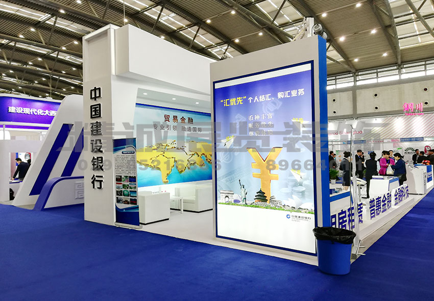 “中國(guó)建設(shè)銀行 建設(shè)美好生活”作為展位的主題,從金通科技到悅享生活,以及優(yōu)智服務(wù)的板塊展示,體現(xiàn)中國(guó)建設(shè)銀行成立以來的成就。運(yùn)用藍(lán)色作為點(diǎn)綴色,代表著嚴(yán)格、規(guī)范、認(rèn)真的企業(yè)理念;采用logo標(biāo)志,象征飽滿、親和、通融。