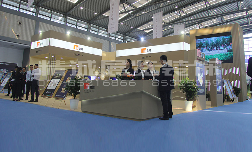 合能地產(chǎn)展位以象征現(xiàn)代、科技、創(chuàng)新的風(fēng)格設(shè)計(jì),通過設(shè)置LED大屏、燈箱展板、區(qū)域規(guī)劃圖等表現(xiàn)手段,并以建筑造型為展位外形,體現(xiàn)了堅(jiān)持品質(zhì)匠心的精神。