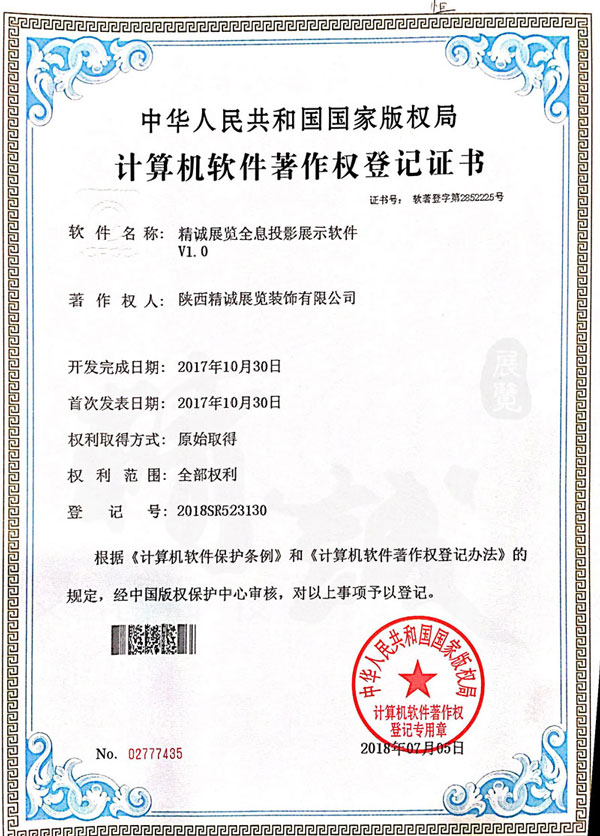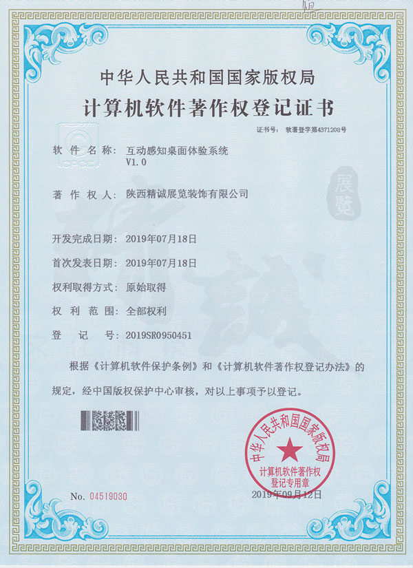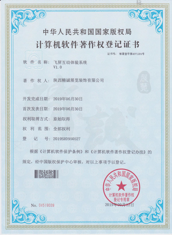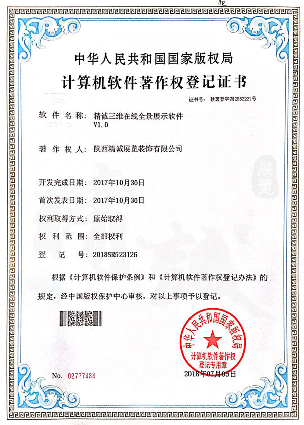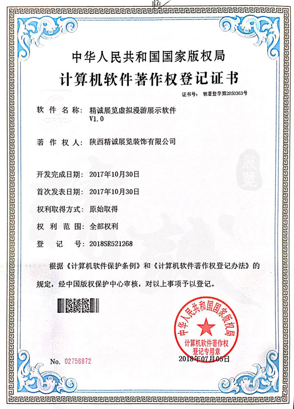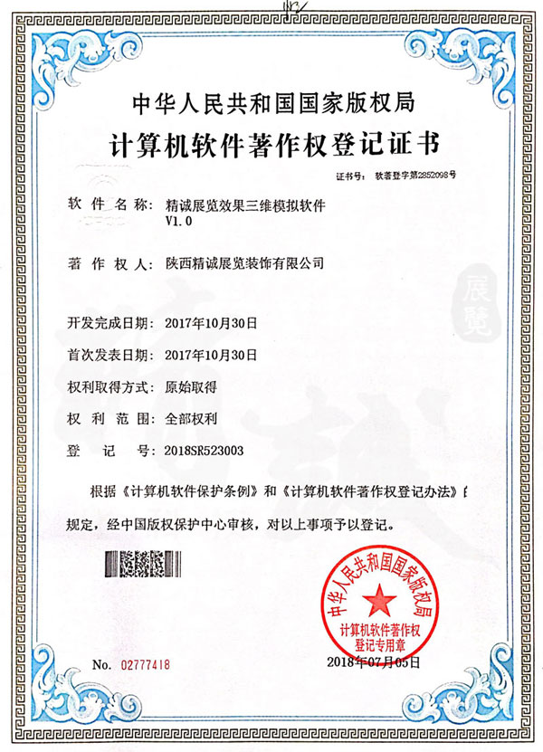 - 陜西精誠(chéng)展覽裝飾有限公司計(jì)算機(jī)軟件著作權(quán)登記證書(shū) -