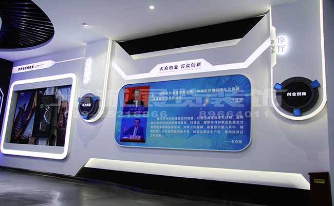 序廳以“大眾創(chuàng)業(yè) 萬眾創(chuàng)新”的理念為出發(fā)點,提取“創(chuàng)新、創(chuàng)業(yè)”為空間設(shè)計的設(shè)計理念,展示國家政策、社會發(fā)展、學(xué)生就業(yè)、科技創(chuàng)新等方面內(nèi)容,更好地實現(xiàn)人們的精神追求和自身價值。