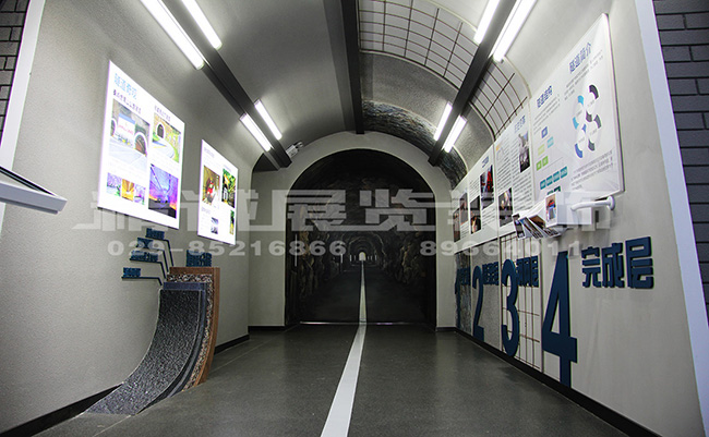 隧道造型結(jié)合3D景深畫面,展示隧道結(jié)構(gòu)。